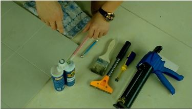 膠槍、海綿、水刮板、清縫工具、接料板、水盆、毛巾等。